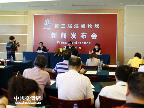 9日,第三屆海峽論壇新聞中心、福建省新聞辦公室在廈門聯合舉行新聞發(fā)布會,介紹論壇籌備情況。(中國臺灣網 張瑞宸 攝)