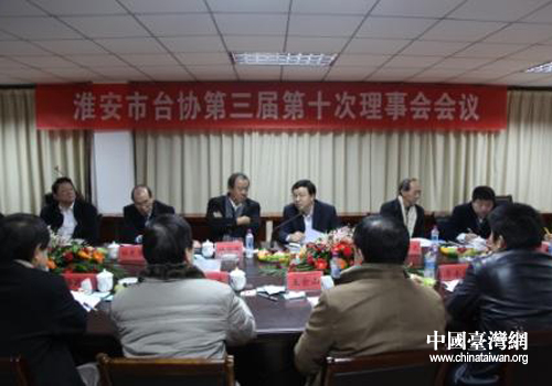 淮安市臺協(xié)第三屆第十次理事會會議現(xiàn)場。(圖片來源:淮安市臺辦)
