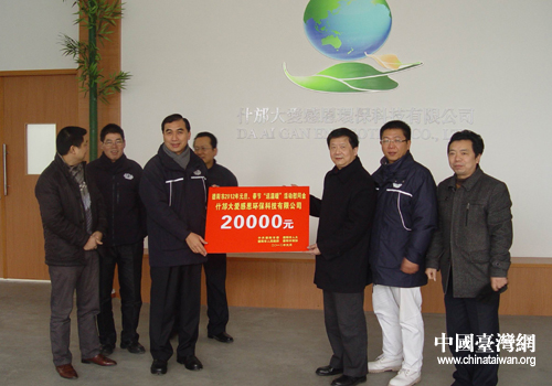 獨遠(yuǎn)程向大愛感恩環(huán)保科技公司贈送慰問金。(德陽市臺辦 甘和林 攝)