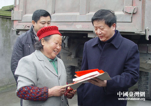 中國臺灣網(wǎng)1月16日德陽消息 日前,在四川德陽市臺辦主任獨遠(yuǎn)程的帶領(lǐng)下,市臺辦全體干部分別對大愛感恩環(huán)?萍脊竞腿懈骺h(市、區(qū))132戶困難臺屬進(jìn)行入戶走訪慰問。給他們送去慰問金、慰問信、新春聯(lián)和新臺歷,并代表市委臺辦和市人民政府臺辦祝全市臺胞臺屬新年快樂、全家幸福。
