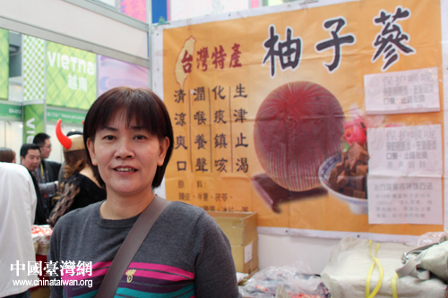合租攤位的楊女士主要經(jīng)營(yíng)白柚參,她一開(kāi)口就告訴記者,西洽會(huì)效果很好,去年帶來(lái)的產(chǎn)品“全部賣光光,沒(méi)剩半瓶,最后只帶著布置展位的布條回臺(tái)灣了”。出師得利的她,一回去就告訴大家說(shuō)展會(huì)的推廣效果好,于是今年同行來(lái)參會(huì)的臺(tái)商又增加了。