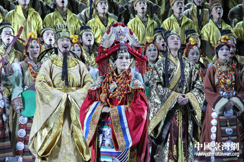 中國臺灣網(wǎng)10月11日北京消息 10日下午,大型史詩音樂劇《文成公主》在國家大劇院首演。男女主角文成公主和松贊干布由著名青年歌唱家譚晶和藏族歌手四郎貢布擔(dān)綱。