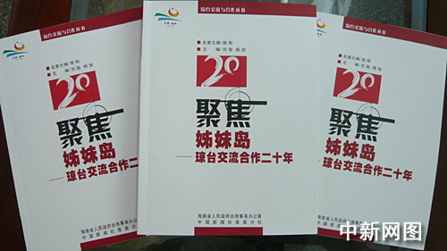 為紀(jì)念海南建省辦經(jīng)濟(jì)特區(qū)20年,感謝致力瓊臺(tái)兩島交流合作的兩岸有識(shí)之士,海南省臺(tái)辦、中新社海南分社聯(lián)合編著《聚焦姊妹島——瓊臺(tái)交流合作20年》一書(shū)。該書(shū)以新聞報(bào)道的形式,詳實(shí)、生動(dòng)地再現(xiàn)了瓊臺(tái)交流的歷程和重大歷史事件,反映了20年來(lái)瓊臺(tái)交流合作取得的重要成果。