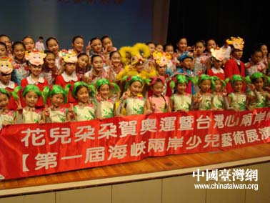 中國(guó)臺(tái)灣網(wǎng)2月24日消息 “花兒朵朵·賀奧運(yùn)暨臺(tái)灣心·兩岸情第一屆海峽兩岸少兒藝術(shù)展演活動(dòng)”2月2日在臺(tái)灣基隆市文化中心演藝廳隆重舉行。