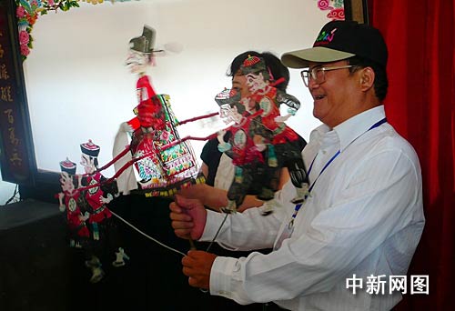 高雄縣記者公會理事長盧鴻霖介紹說,臺灣有很多人喜歡皮影戲,但皮影戲在臺灣當(dāng)?shù)匾巡欢嘁,希望通過此次專訪,促進兩岸民俗文化交流,將皮影這一非物質(zhì)文化遺產(chǎn)發(fā)揚光大,很好地傳承下去。