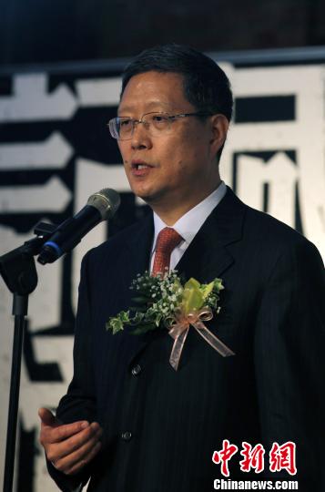 圖為中國(guó)海外交流協(xié)會(huì)副會(huì)長(zhǎng)何亞非在展覽開幕式上致辭。 董會(huì)峰 攝
