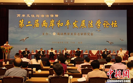 8月14日,第二屆兩岸和平發(fā)展法學(xué)論壇在北京召開。本次論壇由海峽兩岸關(guān)系法學(xué)研究會主辦,來自兩岸法學(xué)界、法律界專家學(xué)者共180余人出席論壇。中新社發(fā) 陳小愿 攝