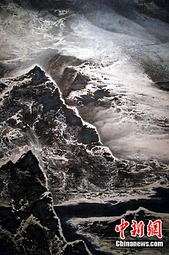 3月21日,《劉國(guó)松創(chuàng)作大展》在北京中國(guó)美術(shù)館展出。中新社發(fā) 錢(qián)興強(qiáng) 攝