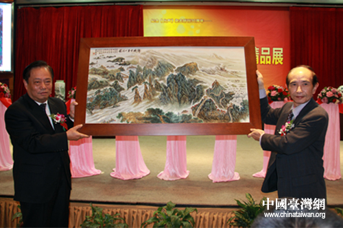 兩岸藝術(shù)家攜手共繪兩塊“錦繡中華山河圖”陶瓷板畫,分別贈(zèng)與大陸和臺(tái)灣的博物館收藏。(中國(guó)臺(tái)灣網(wǎng) 郜利敏 攝)
