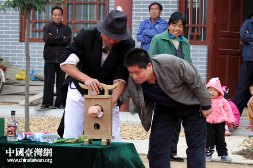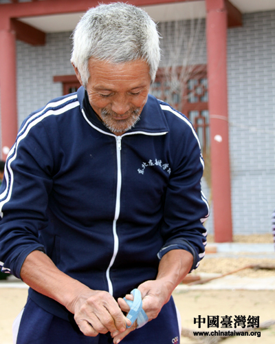 河南非物質(zhì)文化傳承人、60多歲的于金升老人表演。
