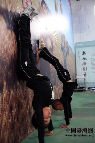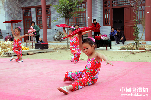 中國(guó)臺(tái)灣網(wǎng)9月25日河南消息 鉆圈、柔功、硬氣功、魔術(shù)……今天,濮陽東北莊雜技藝術(shù)團(tuán)的孩子們?yōu)閮砂队浾叻钌狭司实难莩觥?/P>