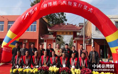 《河南有個(gè)“臺(tái)灣村”》一書發(fā)行儀式在“臺(tái)灣村”牌坊前隆重舉行。圖片來源:鄧州臺(tái)辦