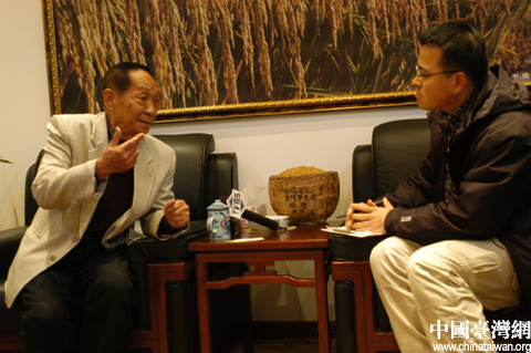 中國臺灣網(wǎng)12月18日長沙消息 帶著如何應(yīng)對世界糧食危機(jī)的疑問,12月17日,臺灣TVBS電視臺記者莊志偉、李皇龍來到湖南省雜交水稻研究中心,采訪了袁隆平院士。