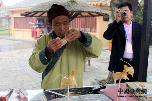 糖人藝術(shù)家馬大吹現(xiàn)場展示。(中國臺灣網(wǎng) 董潔 攝)