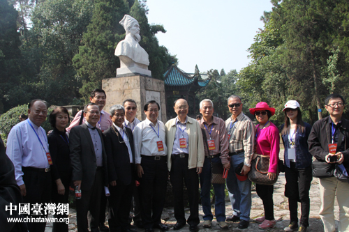 100多位兩岸專家學(xué)者與產(chǎn)業(yè)界人士,8日來到湖北黃岡祭拜李時珍,圖為祭拜后臺灣嘉賓在醫(yī)圣墓前合影。(中國臺灣網(wǎng) 楊麗 攝)