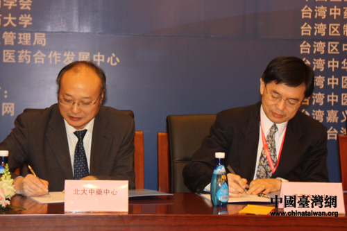 國家中醫(yī)藥管理局對臺港澳交流合作中心、臺灣工研院等單位就加強兩岸中醫(yī)藥合作交流達(dá)成多項協(xié)議,圖為簽約儀式現(xiàn)場(中國臺灣網(wǎng) 趙輝 攝)