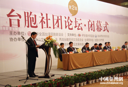 中國臺灣網(wǎng)5月13日北京消息 5月11日至12日,由中華全國臺灣同胞聯(lián)誼會主辦的、以“進一步發(fā)揮臺胞社團作用,促進兩岸關(guān)系和平發(fā)展”為主題的“第二屆臺胞社團論壇”在北京舉行。來自海峽兩岸、港澳及海外的160多家臺胞社團,260余位社團領(lǐng)袖和代表們出席了本屆論壇,與會代表圍繞“加強兩岸經(jīng)貿(mào)交流,深化兩岸經(jīng)濟合作”、“深化兩岸文化交流,共同弘揚中華文化”、“充分發(fā)揮臺胞社團作用,深化兩岸關(guān)系和平發(fā)展”三個議題積極思考,踴躍發(fā)言。論壇牢牢把握兩岸關(guān)系和平發(fā)展的新形勢,明確了臺胞社團新任務,匯聚了廣泛共識,取得了可喜成果。