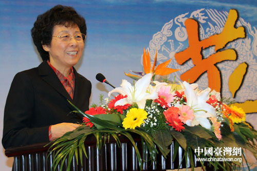 全國人大常委會副委員長、民進(jìn)中央主席嚴(yán)雋琪致辭。(中國臺灣網(wǎng)董潔 攝)