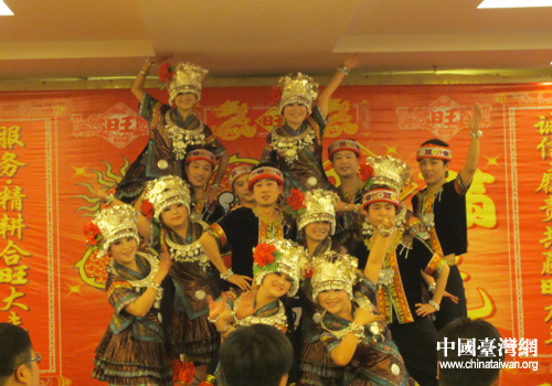 旺旺貴陽(yáng)分公司員工表演的舞蹈《苗族敬酒歌》。(貴陽(yáng)市臺(tái)辦 段小芬 攝)