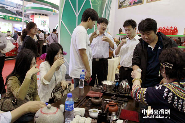 9月28日,由農(nóng)業(yè)部海峽兩岸農(nóng)業(yè)交流協(xié)會與臺灣嘉義市農(nóng)會合作主辦的臺灣精品館亮相第十屆中國國際農(nóng)產(chǎn)品交易會。圖為參觀者品嘗臺灣阿里山高山茶。(中國臺灣網(wǎng)記者 普燕 攝)