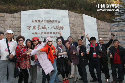 臺灣參訪團成員在長城腳下合影留念。(中國臺灣網(wǎng) 郭瑩瑩 攝)