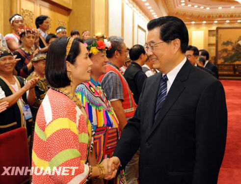 胡錦濤首先對(duì)臺(tái)灣少數(shù)民族代表團(tuán)來(lái)大陸參訪表示熱烈歡迎,并向臺(tái)灣少數(shù)民族同胞致以誠(chéng)摯問(wèn)候。