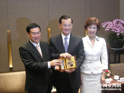 中國臺灣網(wǎng)5月25日臺北消息 國民黨榮譽主席連戰(zhàn)及夫人連方瑀24日晚會見了剛剛抵達(dá)臺北的河北省副省長楊崇勇一行。