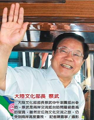 蔡武訪臺(tái),受到兩岸媒體高度關(guān)注。(圖片來(lái)源:臺(tái)灣《聯(lián)合晚報(bào)》)