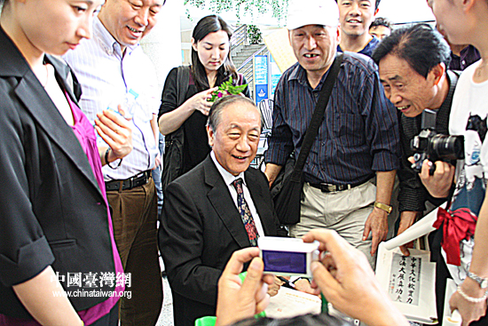 郁慕明出席開幕式并為上海書法愛好者簽名并合影。(中國臺灣網(wǎng) 李桂英 攝)