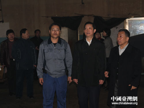 中國臺灣網(wǎng)3月12日淄博消息 日前,山東省臺辦副主任張民忠率宣傳處處長董平等一行3人來淄博市高青縣,考察調(diào)研臺資企業(yè)淄博聯(lián)昱紡織有限公司和山東大鴻制釉有限公司進。淄博市臺辦主任王秀輝、高青縣縣長劉忠遠陪同考察調(diào)研。