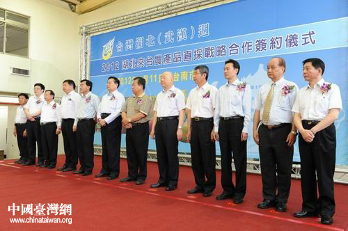 中國(guó)臺(tái)灣網(wǎng)5月14日臺(tái)南消息 2012湖北來(lái)臺(tái)農(nóng)產(chǎn)品直采戰(zhàn)略合作簽約儀式日前在臺(tái)南市南瀛公司舉行,此次合作將搭建臺(tái)灣農(nóng)產(chǎn)品直采平臺(tái),使得臺(tái)灣的新鮮蔬菜和水果路過海峽直達(dá)武漢。湖北省委副書記、省長(zhǎng)王國(guó)生,湖北副省長(zhǎng)田承忠出席簽約儀式。