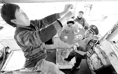 22日,?吭诟=ㄈ萑蹍^(qū)肖厝碼頭的臺輪“和發(fā)財(cái)6號”上其樂融融,當(dāng)?shù)厣掣襁叿琅沙鏊俦c船上臺胞一起動手掛花燈、做元宵,喜迎元宵佳節(jié)。(周電彬 夏仰峰 攝影報(bào)道)