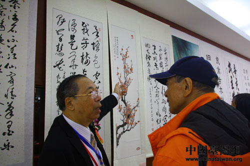 臺(tái)灣嘉賓現(xiàn)場(chǎng)交流書畫作品(中國(guó)臺(tái)灣網(wǎng) 吳曉寒 攝)
