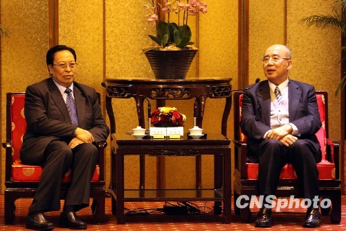 中新社臺(tái)北十二月十四日電 (記者 曾嘉 陳立宇)中國(guó)國(guó)民黨榮譽(yù)主席吳伯雄,十四日晚間在臺(tái)北圓山飯店會(huì)見(jiàn)了率團(tuán)前來(lái)臺(tái)灣參訪的中共中央委員、原河南省委書(shū)記徐光春。