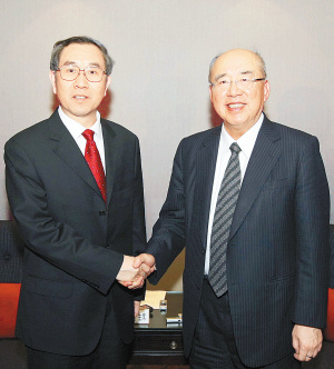 4月28日上午,自治區(qū)主席馬飚在臺(tái)北拜會(huì)中國(guó)國(guó)民黨榮譽(yù)主席吳伯雄。吳伯雄說(shuō):“廣西在兩岸經(jīng)貿(mào)文化交流合作中發(fā)揮了火車頭作用!