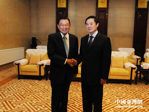 中共四川省委書記、省人大常委會(huì)主任劉奇葆在成都會(huì)見中國國民黨副主席江丙坤。(圖片來源:四川省臺(tái)辦)