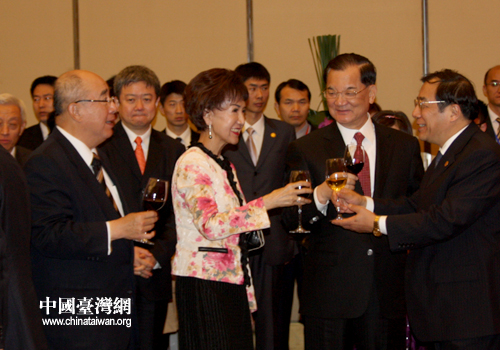 中國國民黨榮譽(yù)主席連戰(zhàn)、吳伯雄、親民黨主席宋楚瑜等200多位臺(tái)灣嘉賓出席了酒會(huì)。