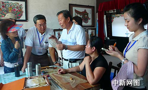 臺灣記者對侯馬皮影進行參觀訪問。文芳 攝