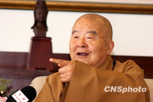 9月1日,臺(tái)灣高僧、佛光山開山宗長(zhǎng)星云大師在佛光山傳燈樓接受大陸中央媒體駐點(diǎn)記者聯(lián)合采訪。他在回答有關(guān)達(dá)賴來臺(tái)的問題時(shí)說,達(dá)賴?yán)镞@次本不該來臺(tái),來的時(shí)間不對(duì)、地點(diǎn)不對(duì)、邀請(qǐng)程序不對(duì),所以產(chǎn)生問題。 中新社發(fā) 董會(huì)峰 攝