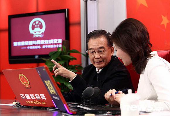 2月27日下午3時,中共中央政治局常委、國務(wù)院總理溫家寶接受中國政府網(wǎng)、新華網(wǎng)聯(lián)合專訪,與廣大網(wǎng)友在線交流。(來源:新華社)