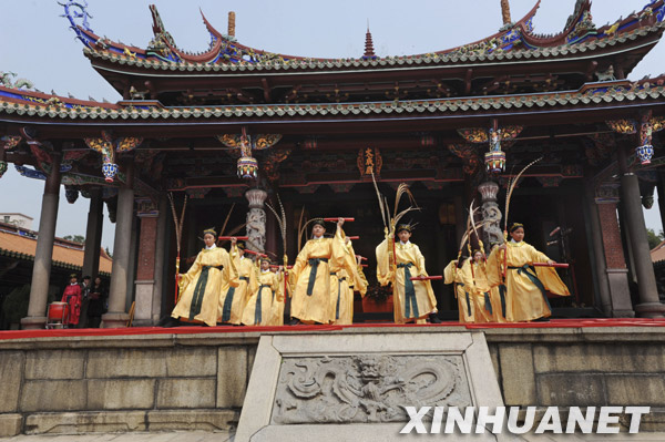 當日,臺北孔廟舉行春季祭孔典禮,2000多名臺灣各地民眾和來自大陸及海外的賓客聚集一堂,共同敬奉中華民族的至圣先師孔子。據(jù)介紹,祭孔始于孔子去世后的第二年,最初每年僅秋季一次,至東漢實行春秋兩祭。臺北孔廟除了每年秋季祭孔外,從2008年起推行“春日祭孔 躍動儒風(fēng)”的釋奠古禮。新華社發(fā)(吳景騰 攝)