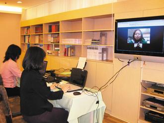 士林地檢署偵辦和信醫(yī)院醫(yī)師黃麟杰在大陸涉嫌殺害情婦案,以遠程視頻制做大陸5名證人筆錄。地檢署昨天模擬當(dāng)時視頻偵訊情形。圖片來源:臺灣《聯(lián)合報》