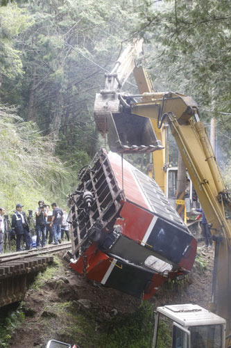 報(bào)道說,阿里山神木線小火車4月27日行駛中遭斷裂枝干砸中,導(dǎo)致4節(jié)車廂翻覆,造成5名大陸游客罹難、100多人受傷。臺灣“林務(wù)局”嘉義林區(qū)管理處5日上午為5名罹難者舉行聯(lián)合公祭。