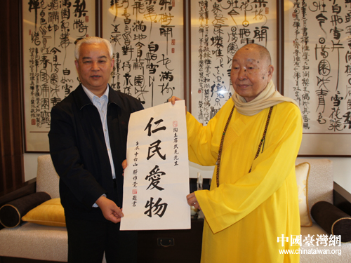 中國臺(tái)灣網(wǎng)4月5日南投消息 4月3日,四川省政協(xié)主席陶武先前往位于臺(tái)灣南投縣的佛教名剎中臺(tái)禪寺參訪,拜訪中臺(tái)禪寺開山方丈惟覺法師。