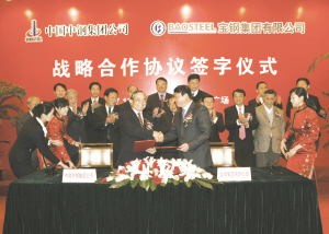 12月5日,中國(guó)中鋼集團(tuán)公司、寶鋼集團(tuán)公司在北京簽署戰(zhàn)略合作協(xié)議。雙方均表示將在已有合作的基礎(chǔ)上,重點(diǎn)在鐵礦石、鉻礦等原料的供應(yīng)、鉻鐵與鎳鐵等鐵合金的供應(yīng)、設(shè)備和資材備件的供應(yīng)、海內(nèi)外的資源開發(fā)、技術(shù)交流與合作以及工程技術(shù)等領(lǐng)域開展全方位、深層次的合作。期間,寶鋼集團(tuán)董事長(zhǎng)徐樂(lè)江在接受記者采訪時(shí),否認(rèn)了“寶鋼收購(gòu)力拓”的報(bào)道。
