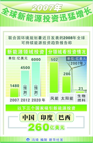 2007年全球新能源投資迅猛增長(zhǎng)(圖)