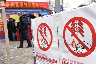 3每個銷售點前都有禁止燃放的提示。 記者 董世彪攝