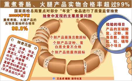 熏煮香腸、火腿產(chǎn)品實(shí)物合格率超過99%(圖)