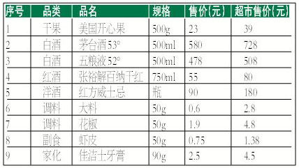 部分商品批發(fā)價(jià)與超市比較