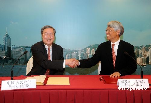 人民銀行行長周小川29日在香港與金管局總裁任志剛簽訂相關(guān)補充合作備忘錄,香港企業(yè)可與上海、廣州、深圳、珠海和東莞五個地方的試點企業(yè),選擇以人民幣進行貿(mào)易結(jié)算。